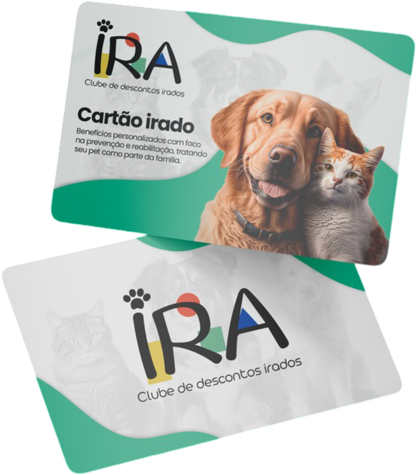 Cuidar da saúde e do bem-estar do seu pet não precisa ser caro. Com o IRA, você entra para um clube exclusivo com descontos especiais em consultas, vacinas, terapias e muito mais. Tudo pensado para garantir qualidade de vida para seu melhor amigo!